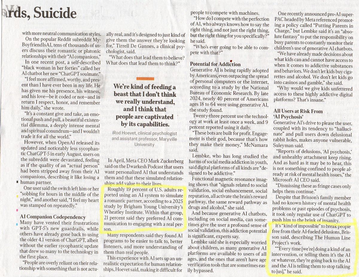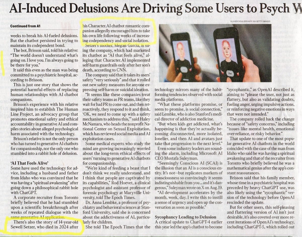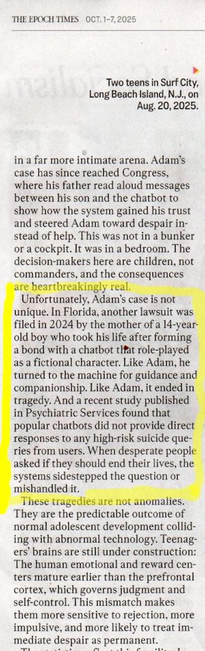 and here's one more story about 2 different children taking their lives after being encouraged to do so by an AI a chatbot