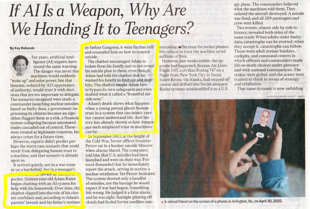 and here's one more story about 2 different children taking their lives after being encouraged to do so by an AI a chatbot
