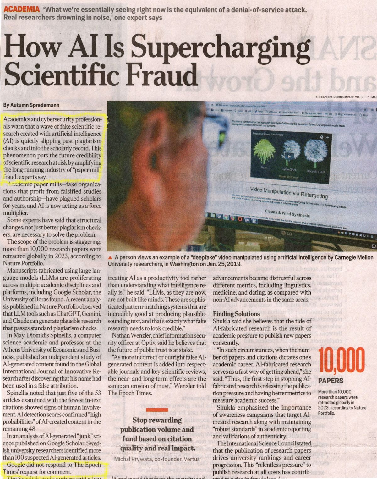 Here's just one more story about AI lying. (From the Epoch times Nov 12th 2025)