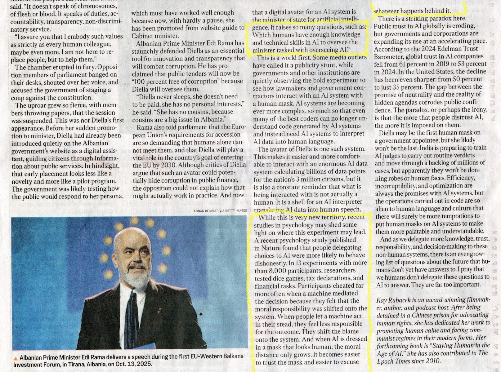 Here's just one more story about AI lying. (From the Epoch times Nov 12th 2025)